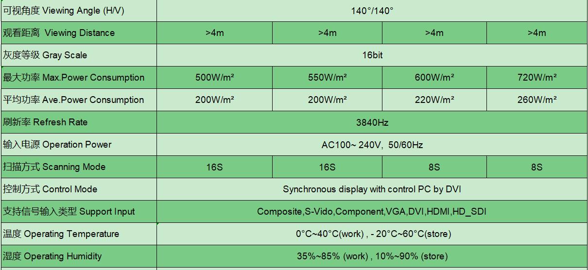 4.节能环保,相比其他显示屏产品,功耗降低50~70%, 平均功耗仅为200W/㎡