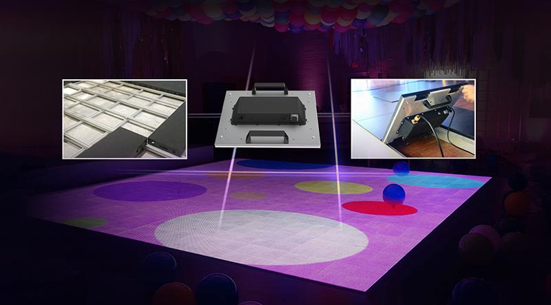 LED地砖屏是一种无需添加互动设备的显示屏产品,广泛应用于商业广场、连锁店形象展示、舞台背景、娱乐电竞行业等场景。他同时具有高防水、耐磨、防滑、承重量大等特性。LED地砖屏的使用场景可以实现人屏互动。有专用地拖安装,可随时调节安装高度,无须钢构,省时省力;